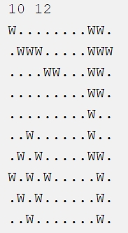 题意:有一块N×M的土地,雨后积起了水,有水标记为‘W’,干燥为‘.’。八连通的积水被认为是连接在一起的。请求出院子里共有多少水洼?