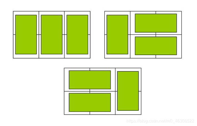 例如n=3时,为2× 3方格,骨牌的铺放方案有三种,如下图: