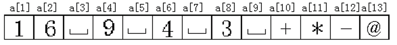 16□9□4□3□+*–,在字符数组A中的形式为: