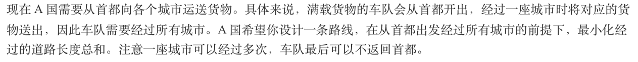 ⼀⾏,⼀个整数,表⽰你设计的路线所经过的道路长度总和。
