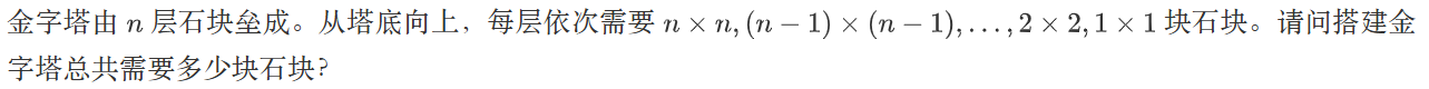一行,一个正整数,表示搭建金字塔所需的石块数量。