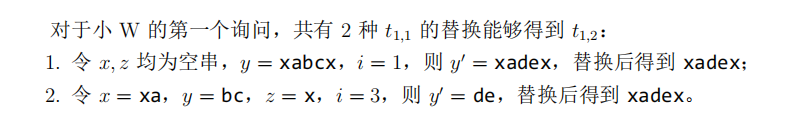 输入的第 j + n + 1 (1 ≤ j ≤ q) 行包含两个字符串 tj,1, tj,2,表示小 W 提出的第 j个问题。