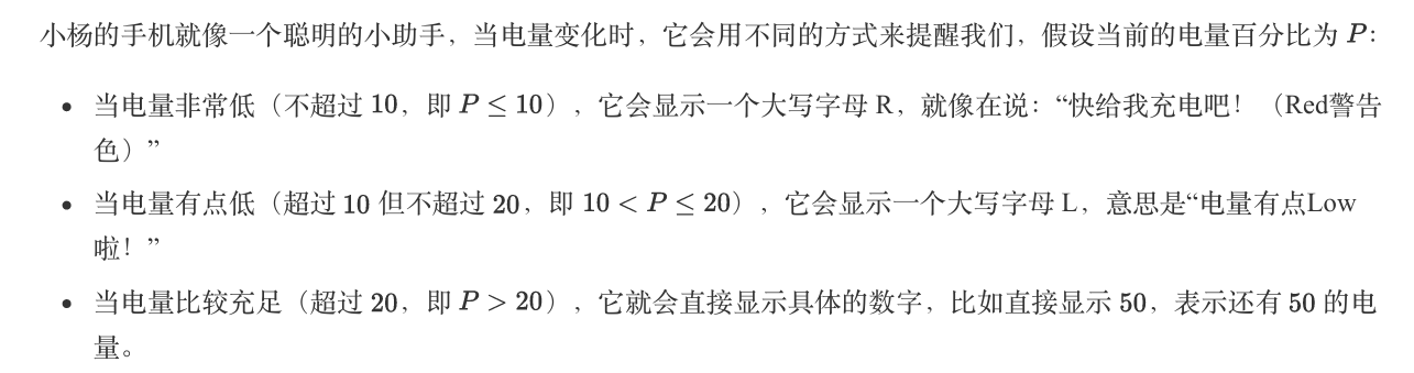 1924: 手机电量显示-CCF-GESP2025年12月一级C++